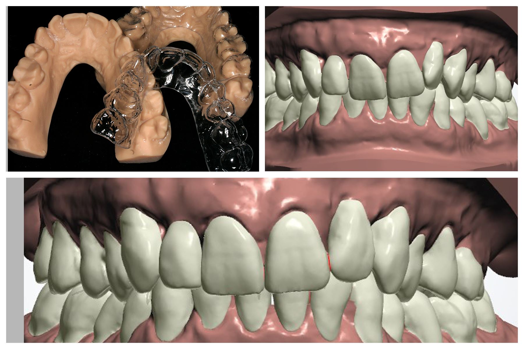 Kleine Korrekturen der Zahnstellung -> grosse Wirkung bei der Ästhetik. Dank modernster Technik fertigen wir Tiefziehschienen an, die Frontzahnkorrekturen tagsüber erlauben. Je nach Stärke der Verschiebung wird Ihnen eine berechnete Stückzahl Schienen geliefert. Sie tragen diese in der Reihenfolge der Bezeichnungen bis Ihre gewünschte Zahnstellung erreicht wird. Natürlich werden die Schritte anhand einer Bilddokumentation aufgezeigt und besprochen. Die Ergebnisse nach 5-7 Schienen abgeglichen und der nächste Schritt eingeleitet. Ob analog mit Abdruck oder digitalem Scan, wir sind gewappnet.